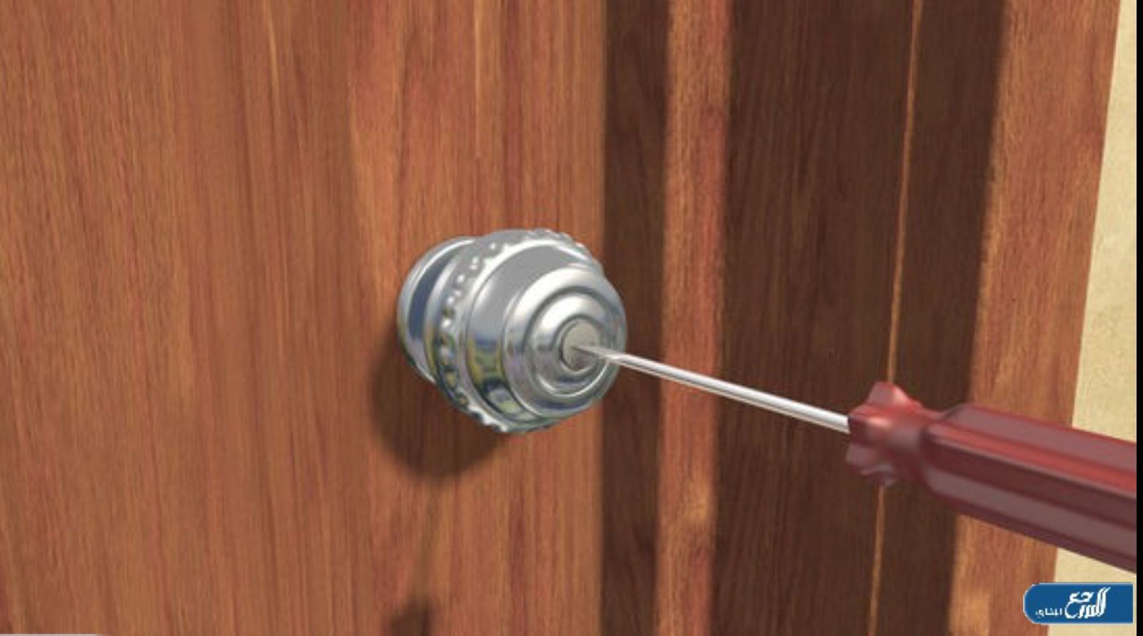 • استخدام مفك مسطح: في بعض الحالات، يمكن استخدام مفك مسطح لدفع القفل أو تحريكه وفتح الباب.
