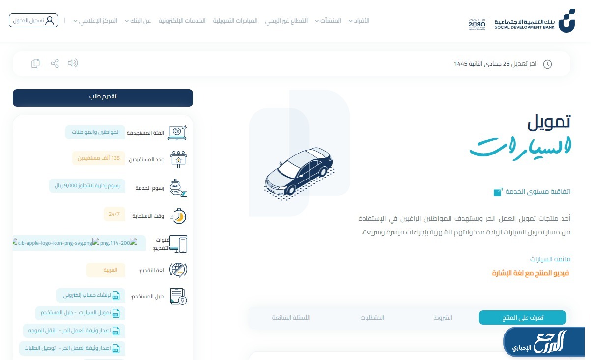 شروط قرض السيارة من بنك التنمية الاجتماعية 2024
